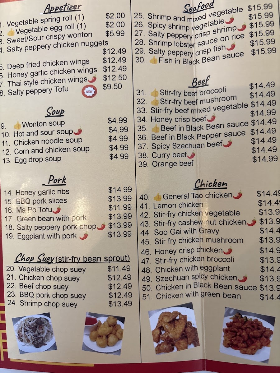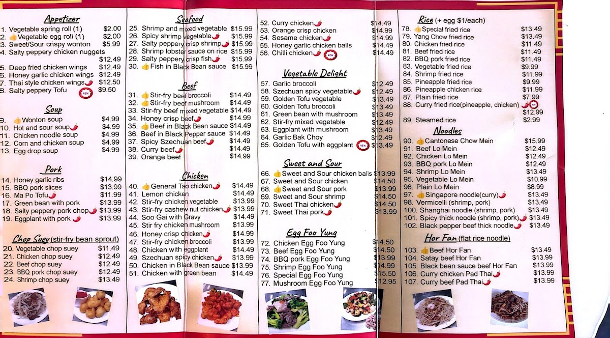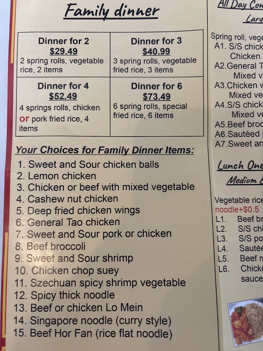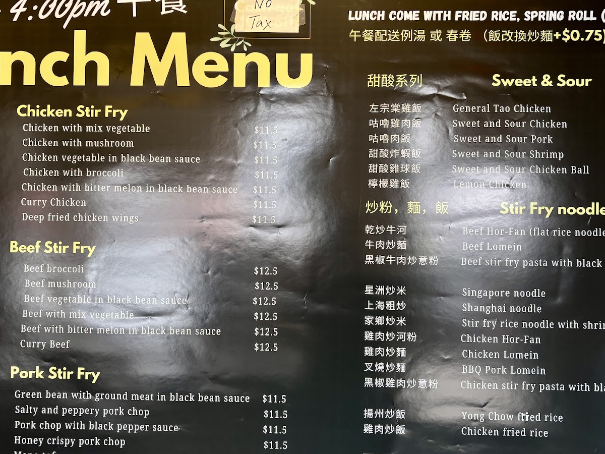 The menu boasts enticing lunch specials like the sweet and sour chicken balls and General Tao chicken, each paired with fried rice, spring rolls, and vegetables for just CA$6.85. The lemon chicken is equally delightful, pleasing both the palate and the wallet.