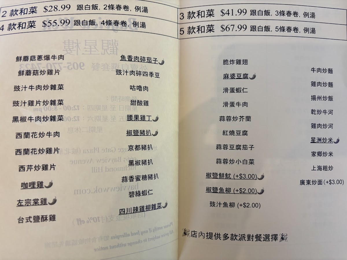Customer reviews sing praises of the generous portions and friendly service. From the satisfying flavors of the chicken and veggies in black bean sauce to the crispness of their spring rolls, every dish resonates with quality and value. Whether you're seeking a quick lunch or a hearty meal, Bayview Wok promises to deliver an unforgettable dining experience.